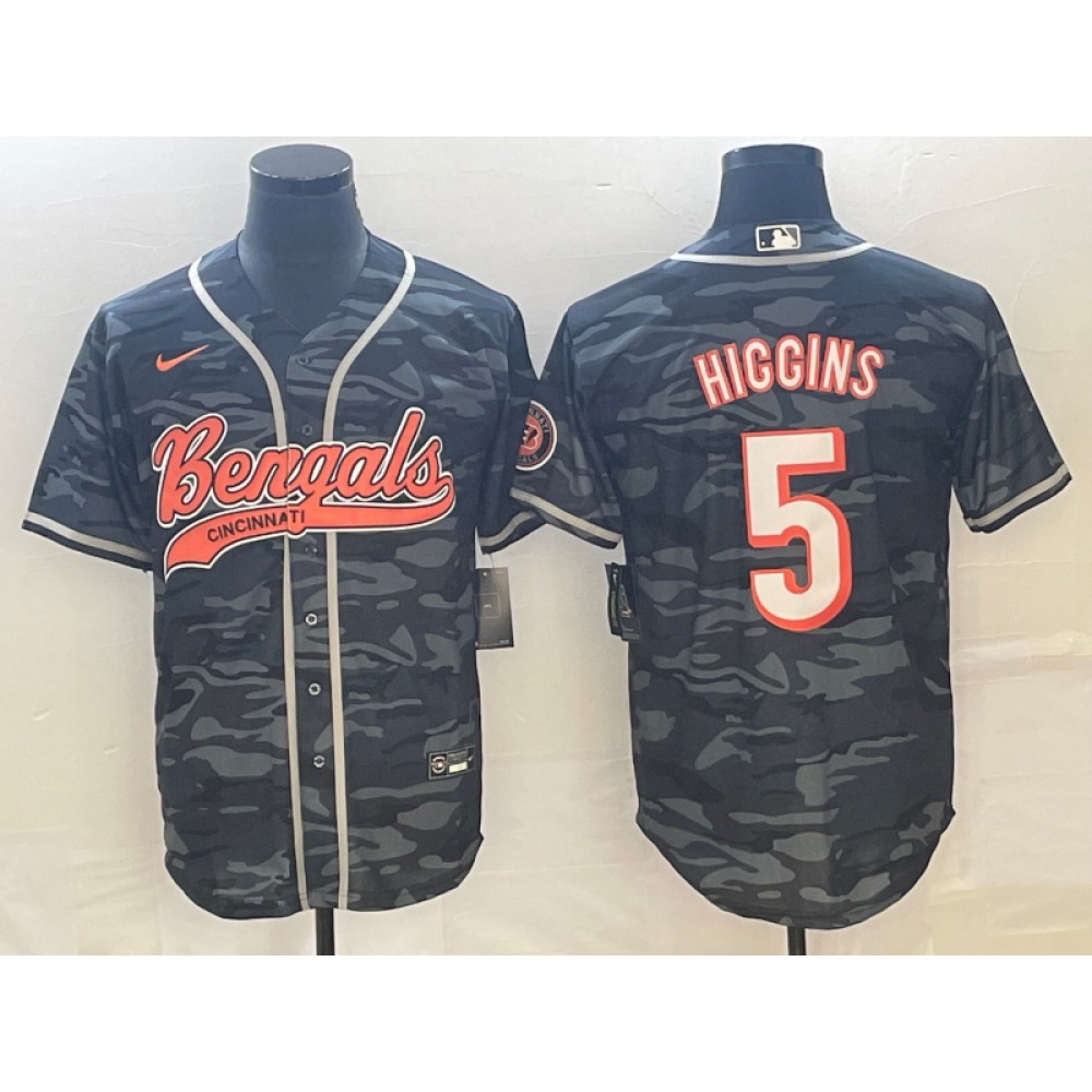 Men’s Cincinnati Bengals #5 Tee Higgins Black With Patch Cool Base Stitched Baseball Jersey