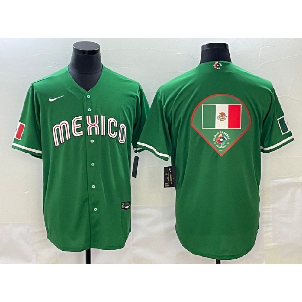 Youth Mexico Baseball Blank 2023 Black World Baseball Classic Big Logo in Back Stitched Jersey