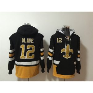 Men’s New Orleans Saints #12 Chris Olave Black Ageless Must-Have Lace-Up Pullover Hoodie