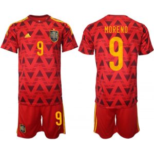 Men’s Spain #9 Moreno Red Home Soccer Jersey Suit