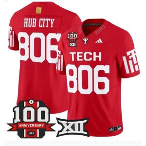 Men’s Texas Tech Red Raiders #806 Hub City Red Premier 100 Year Anniversary Football Jersey