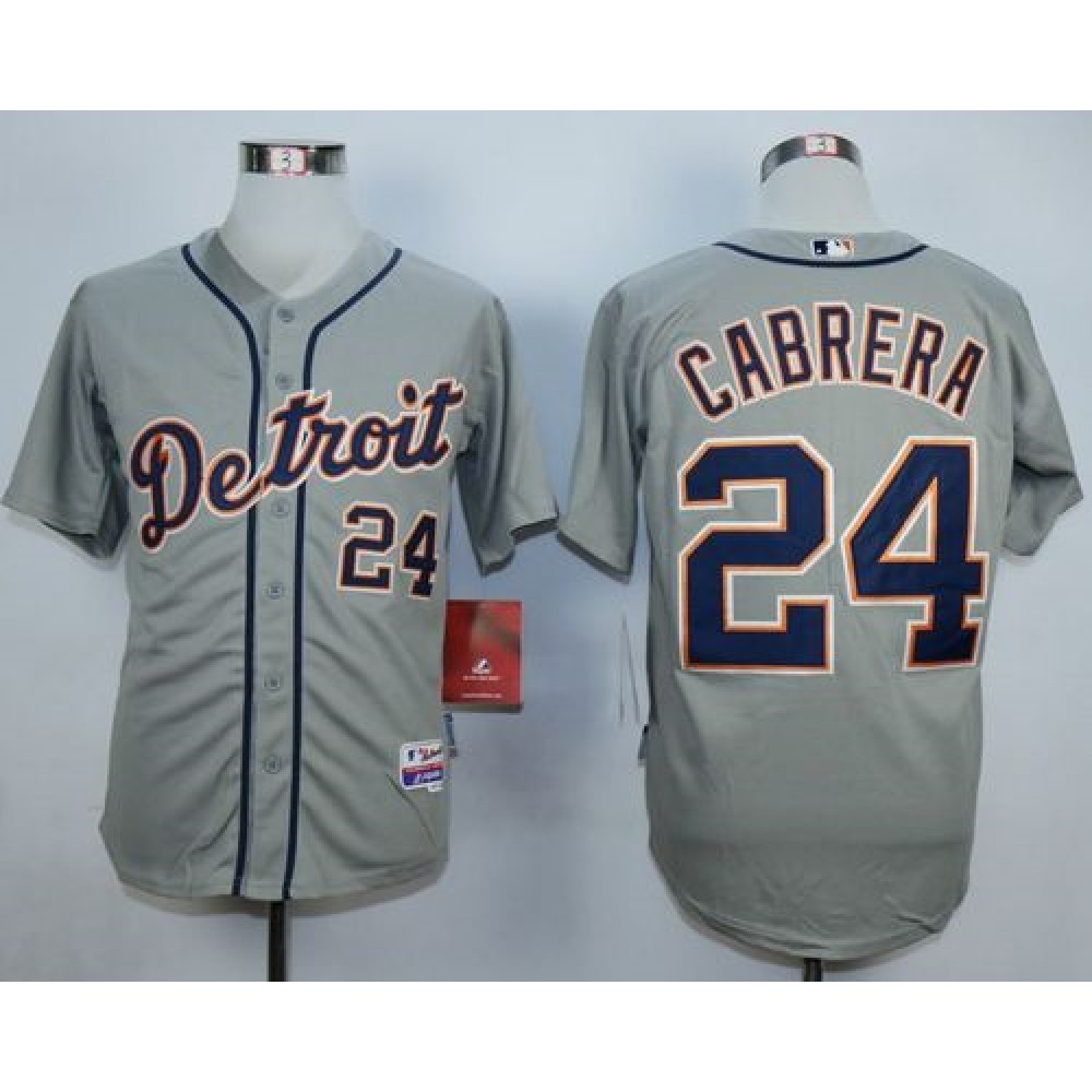 Men’s Detroit Tigers #24 Miguel Cabrera Grey Cool Base Stitched Jersey