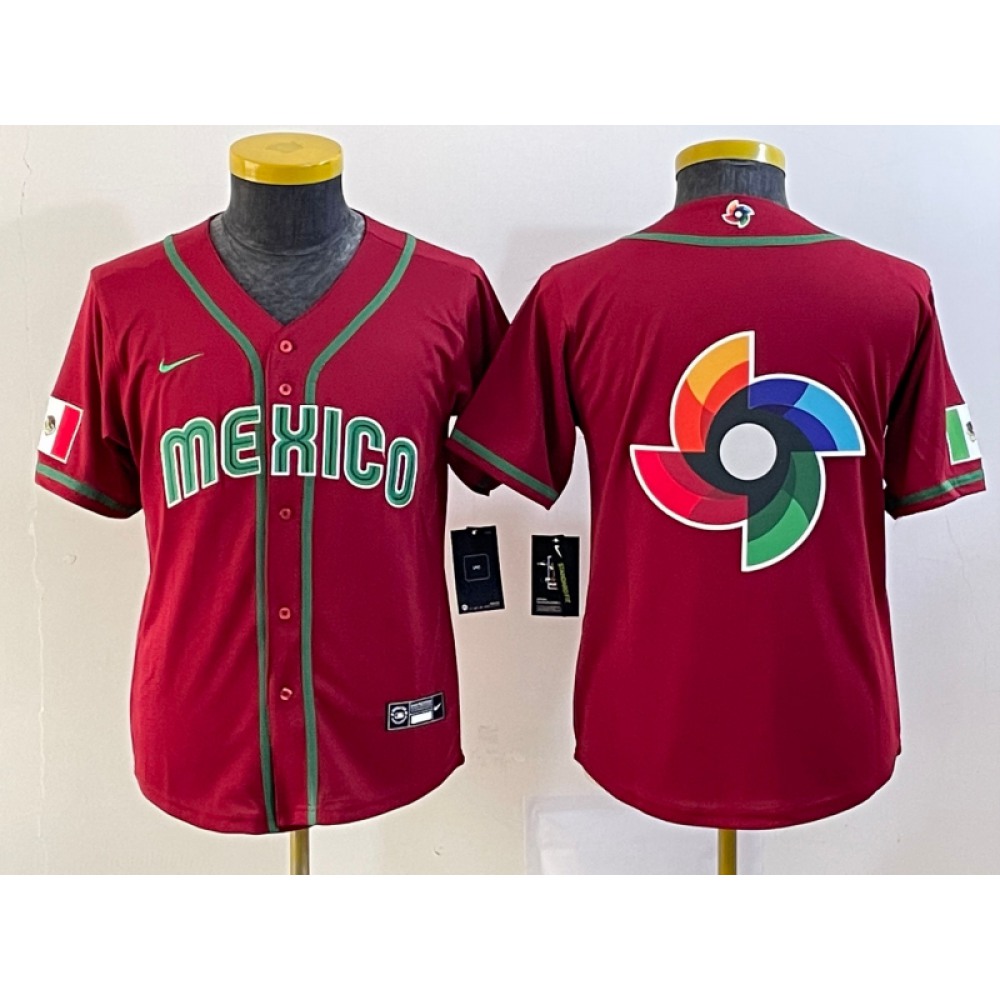 Youth Mexico Baseball Blank 2023 Red World Baseball Classic Stitched Jersey