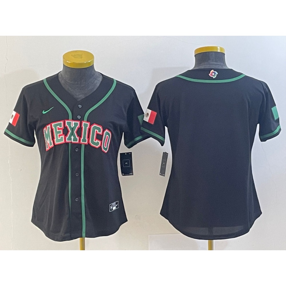 Youth Mexico Baseball Blank 2023 Black World Baseball With Big Logo Classic Stitched Jersey