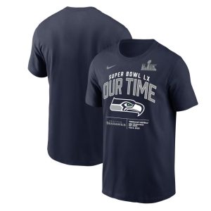 Men’s Seattle Seahawks College Navy Super Bowl LX Clear Sign T-Shirt