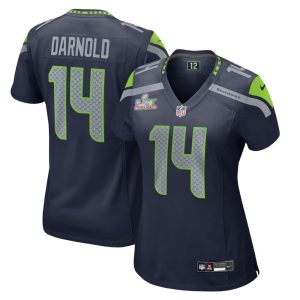 Women’s Seattle Seahawks #14 Sam Darnold College Navy Super Bowl LX Patch Game Jersey